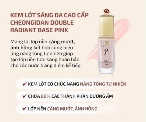 Kem Lót Dưỡng Sáng Whoo Cheongidan Double Radiant Base Pink 40ml